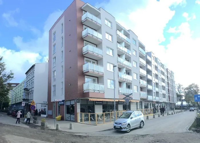 El Apartament Maritimo Apartamento Kołobrzeg está a una distancia de 1 km del Ayuntamiento. Ofrece un balcón y una zona de estar con vistas a la calle. En este apartamento de 36 m^2, los huéspedes pueden descansar junto a la piscina interior o visitar el Lighthouse Kolobrzeg, situado a alrededor de 5 minutos a pie.